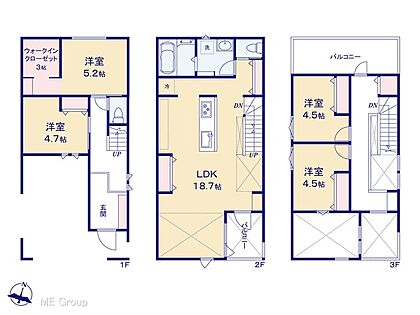 ウォークインクローゼット付きで生活空間を広く利用できます。