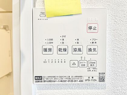 浴室涼風暖房換気乾燥機付きなので、お天気が悪い日のお洗濯も安心!