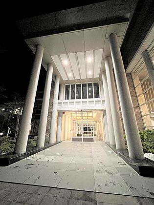 門柱が象徴的なメインエントランス