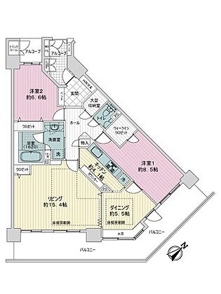 奥行約2mあるバルコニーになります