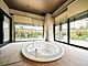 ゲストルーム「泉」にはジャグジーバスが備わっています。庭園風景を眺めながら、癒しの時間を過ごせます。