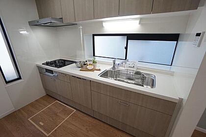 お料理するのが楽しくなる機能的なキッチンです。調理器具や調理家電、食器などもすっきり片付くたっぷりの収納もうれしいポイントです。