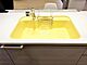 明るい黄色のシンクがキッチンに個性をプラスしています。広々としたカウンターで作業スペースにも余裕があります。