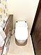 清潔感のあるトイレです。壁面のデザインクロスがアクセントになっています。床や壁の色合いが明るく空間を引き立てています。
