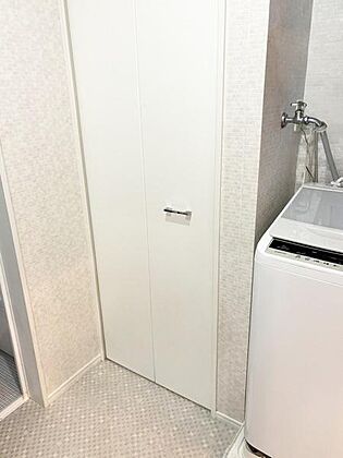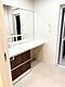 洗面所に収納スペースが設けられており使い勝手の良さが感じられます。扉付きで洗面所をすっきり保つことが可能です。