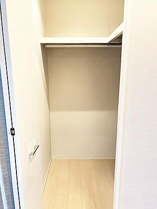 便利なウォークインクローゼットもございます。使いやすい形状で整理整頓もしやすいです。扉付きで見た目もすっきりします。