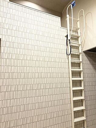 ロフトスペースへ上がるはしごがあります。天井が高く開放感を感じられる空間です。