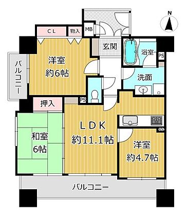 | 間取り | 3LDK | 専有面積 | 61.69m2(壁芯) |