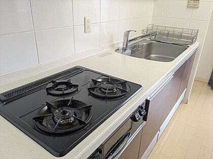 お料理を効率的に、楽しく。あったらいいなをかなえてくれるシステムキッチン。3口のガスコンロで、お料理はよりスピーディーに。