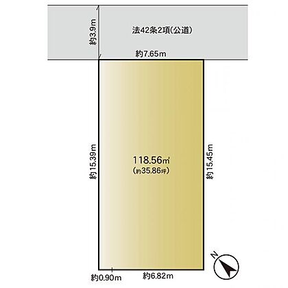| 土地面積/坪(坪単価) | 118.56m2(登記簿)/35.93坪(179.20万円) | 代表的な接道 | 一方 公道 北東 3.9m ※詳細は備考欄をご確認ください |
