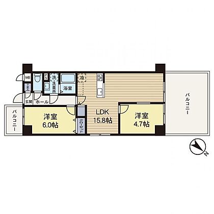 テーブルを置いてもゆとりのある幅の広いバルコニーです。