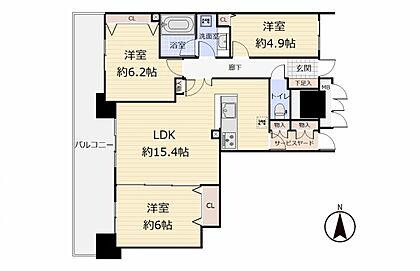 LDK約15.4帖+リビング続き洋室約6帖=広々スペースに○