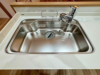 【キッチンシンク】浄水器付き水栓!スペースも広く、清潔感があります。