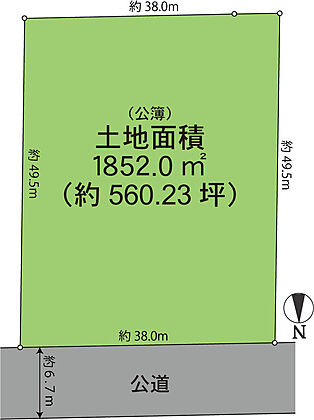 | 土地面積/坪(坪単価) | 1,852.00m2/561.21坪(1.50万円) | 代表的な接道 | 一方 公道 北 6.7m ※詳細は備考欄をご確認ください |