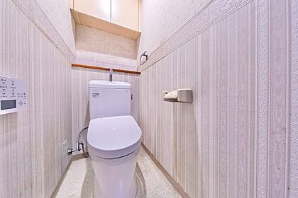 •  トイレは、上部に棚がついているタイプ。ちょっとしたディスプレイスペースとしても良いですね。※画像はCGにより家具等の削除、床・壁紙等を加工した空室イメージです