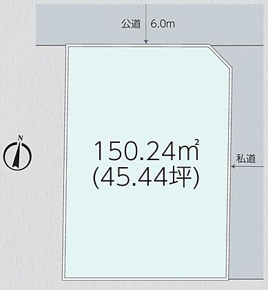 | 土地面積/坪(坪単価) | 150.24m2(登記簿)/45.53坪(85.40万円) | 代表的な接道 | 一方 公道 北西 6m ※詳細は備考欄をご確認ください |
