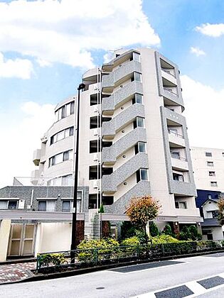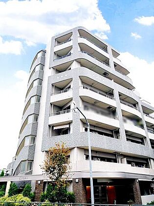 平成17年2月築のモダンフォルムマンション。グレージュタイルで仕上げられた外壁は、落ち着きと高級感を演出。