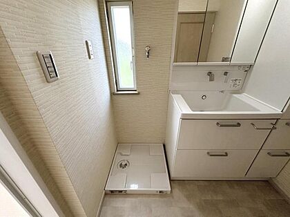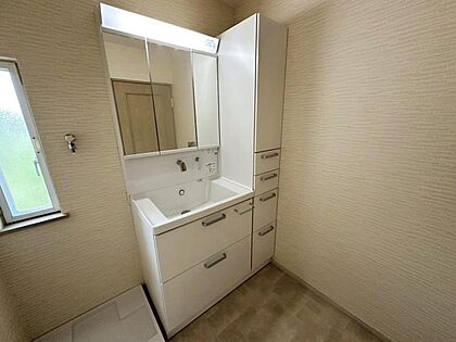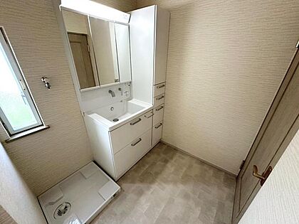 耐水性が高くお掃除が快適なクッションフロア採用の洗面室です