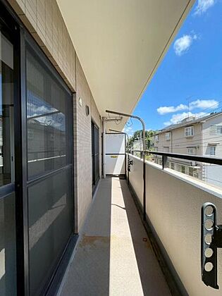 南向きの明るいバルコニーは陽当たり良好で洗濯物が良く乾きます