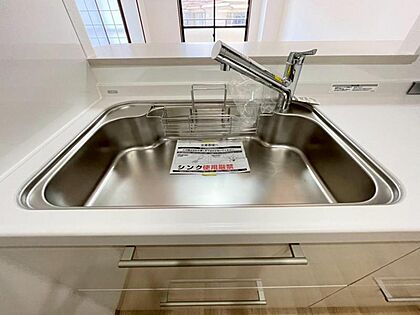鍋や大皿も洗える広々としたシンクです。ステンレスのため耐久性・お手入れしやすさも魅力です