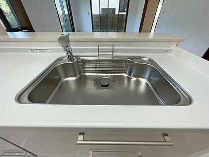 鍋や大皿も洗える広々としたシンクです。ステンレスのため耐久性・お手入れしやすさも魅力です