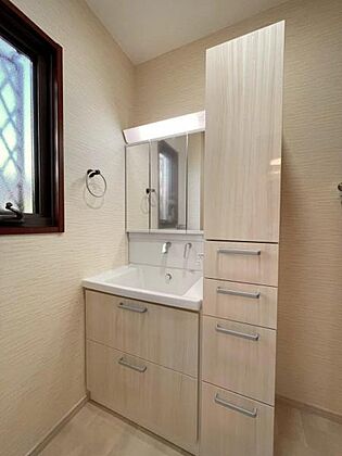豊富な収納スペースがあり、すっきり使える洗面台です