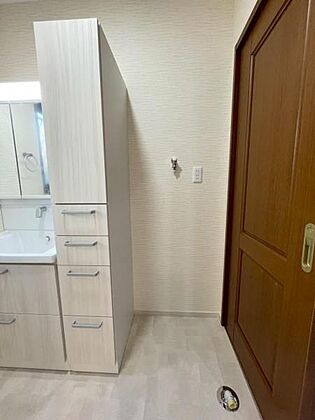 耐水性が高くお掃除が快適なクッションフロア採用の洗面室です