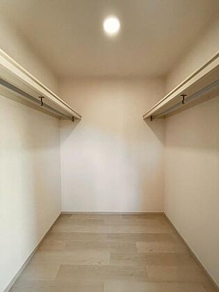 大容量のWICにはご夫婦の衣類がすっきり収まり、衣替えいらずですね