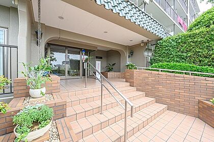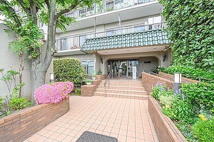 総戸数66戸。緑が映える堂々とした佇まいのマンション。