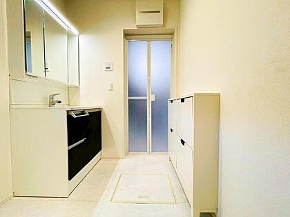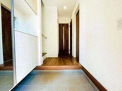 【玄関】お出かけの際に小さなお子様のいるご家庭でもゆったりと靴を履かせて上げることができます。大きな荷物や抱っこしながらでもスムーズに出入り可能なストレスの少ない玄関です。