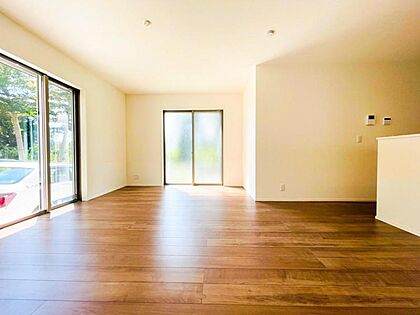 お天気が晴れの日は照明をつけなくても充分明るいリビングです!どこか落ち着きのある広々とした内装です!皆で過ごす空間が、目に浮かんでくる様な優しいリビングダイニングです!くつろいだり楽しい時間を是非!