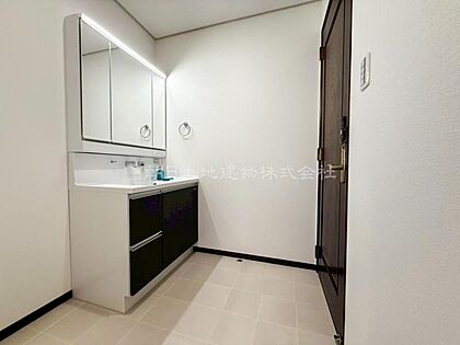 ストレスフリーな広いランドリースペース。大きな洗濯機乾燥機もしっかりとおけます。