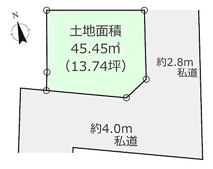 ■南側約4.0m私道×東側約2.8m私道の東南角地で陽当り良好