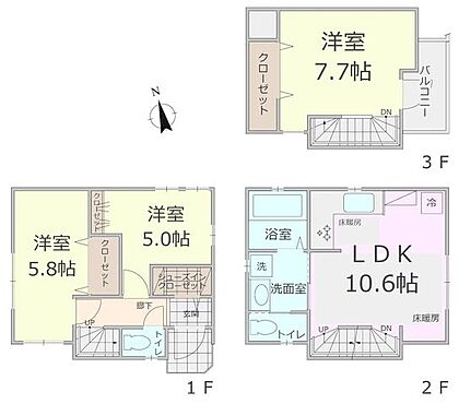 ■建物面積:72.69平米の3LDKタイプ新築戸建
