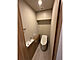 •  【トイレ】独立手洗い器が備わっているトイレです。吊り戸棚が設置されいるため、トイレットペーパーのストックなど収納可能です。