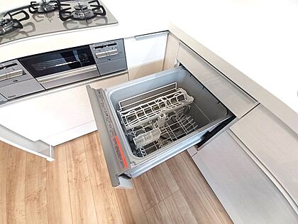 家事の時短に効果大の食洗器付き。高温でパワフルに洗い、温風乾燥します。手洗いよりも節水・節約が可能です。 一度使うと手放せないですよ!