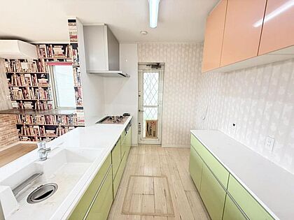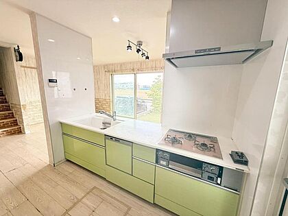 カップボード付きで統一感のあるシステムキッチン。