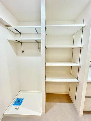 洗濯機置き場!タオルや洗剤のストックなどスッキリ収納できますね