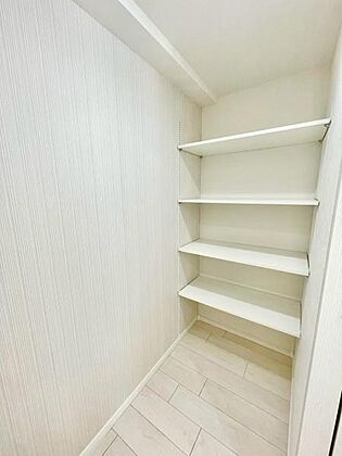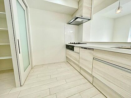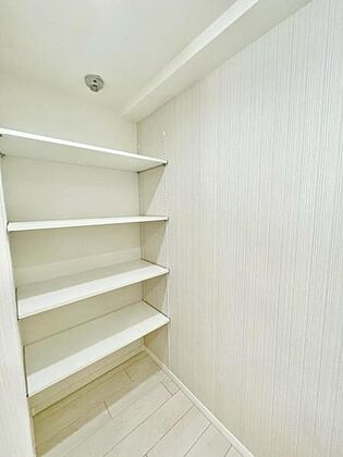 まとめ買いした食品やキッチン家電などを収納できるキッチンパントリー