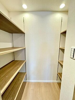 まとめ買いした食品やキッチン家電などを収納できるキッチンパントリー