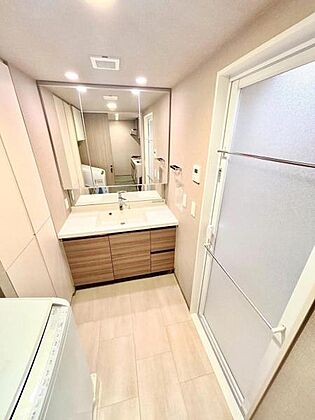 身だしなみチェックもしやすい3面鏡!縦のライン照明がお顔をきれいに映してくれます