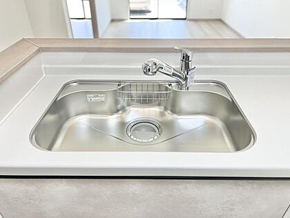 (B号棟)リビングは広々16.12帖、対面キッチンやパントリーなど家事がしやすい工夫もたくさん。
