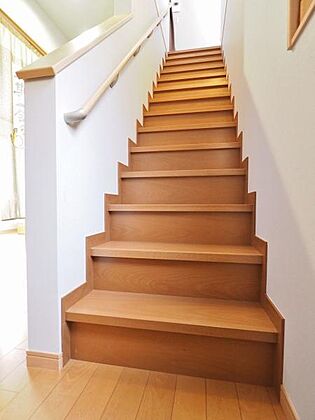 2階へとつながる階段では小窓の光を取り込み、柔らかな雰囲気になります。