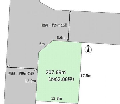 | 土地面積/坪(坪単価) | 207.89m2(登記簿)/63坪(29.00万円) | 接道 | − |