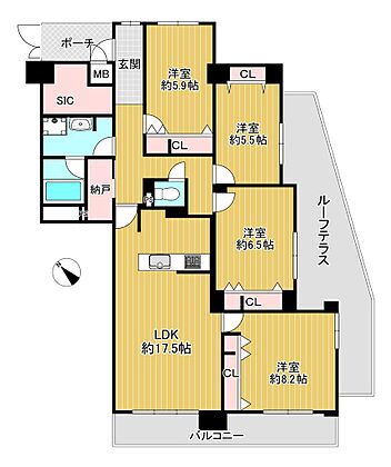 | バルコニー面積 | 13.10m2 | バルコニー向き | 南西 |