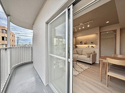 【バルコニー】 洗濯物もよく乾く日当たりのいいバルコニー。リビングからの出入りもスムーズで洗濯者を干すのも楽々。