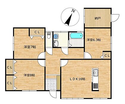 【間取り図】LDK約16帖の3LDKになります。キッチンは対面式にリフォーム予定です。