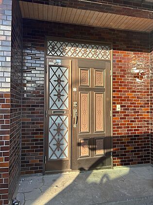 【リフォーム中】おうちの顔となる玄関は外壁重ね張りし、新品のドアに交換します。