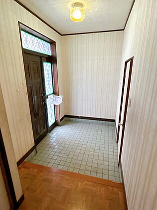 【リフォーム中】1階玄関すぐの土間収納スペースです。壁天井クロス仕上げ、照明新品交換等を行います。