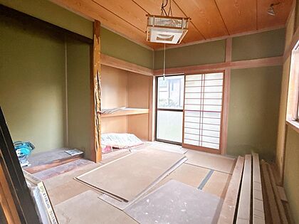 【リフォーム中】1階6帖和室にリフォームするお部屋です。畳表替え、壁天井クロス仕上げ、照明新品交換等を行います。
